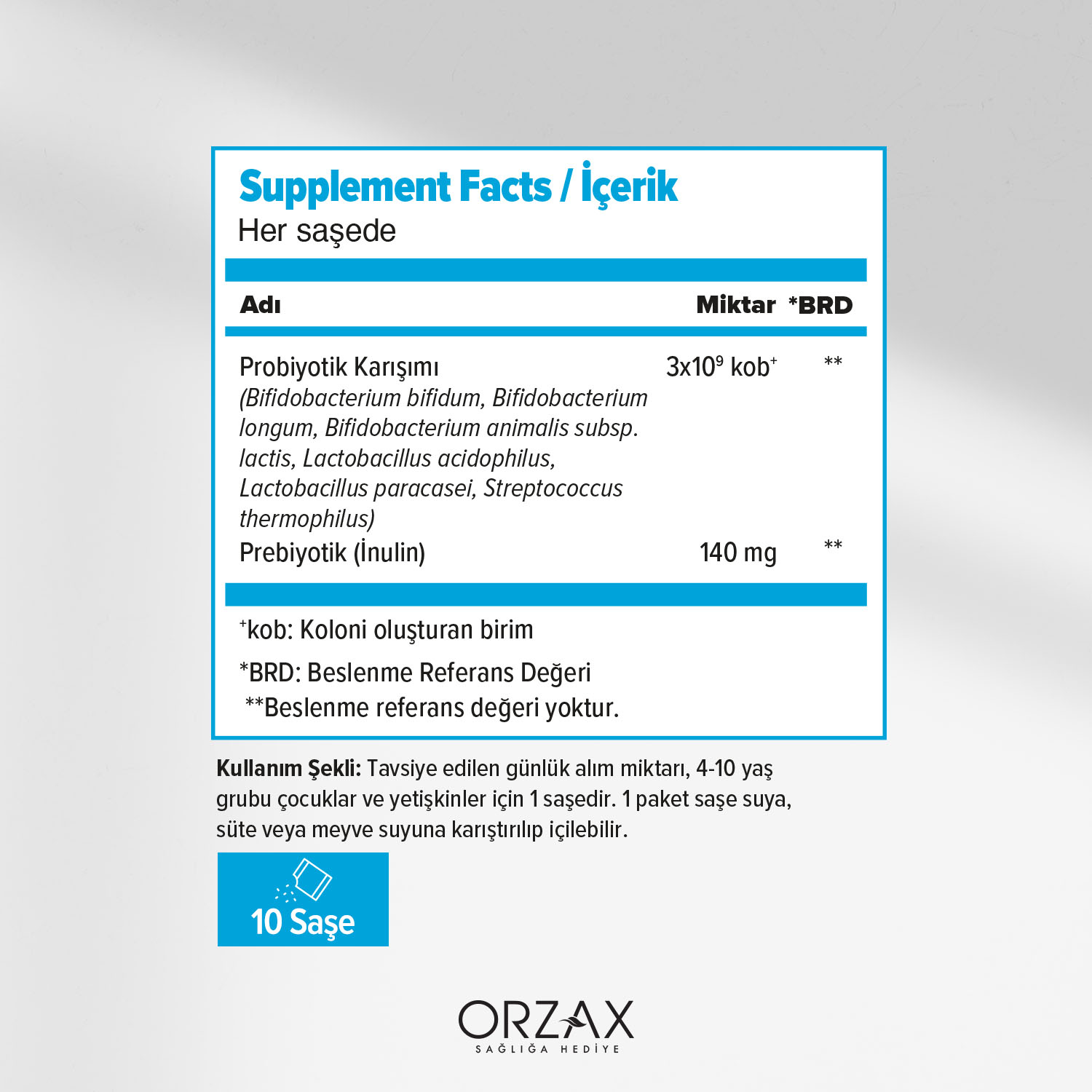 - Bu ürün probiyotik mikroorganizma içerir. Probiyotik mikroorganizmalar sindirim sistemini düzenlemeye ve bağışıklık sistemini desteklemeye yardımcı olur.