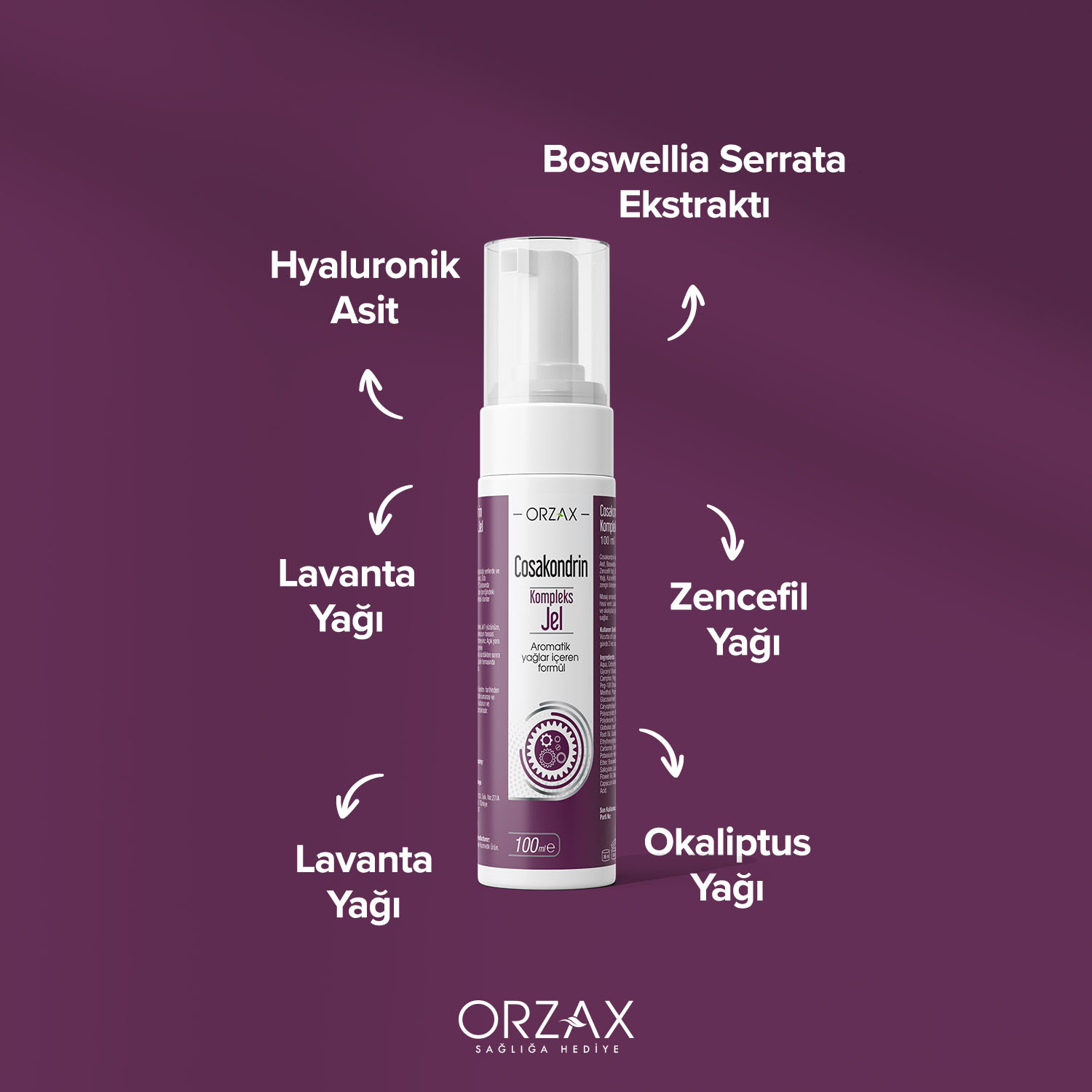 Cosakondrin Kompleks Jel, hyaluronik asit, Boswellia serrata ekstraktı,zencefil yağı, okaliptüs yağı, lavanta yağı, karanfil yağı ve arnika ekstraktı ile zengin bileşime sahiptir. 100 ml’dir.