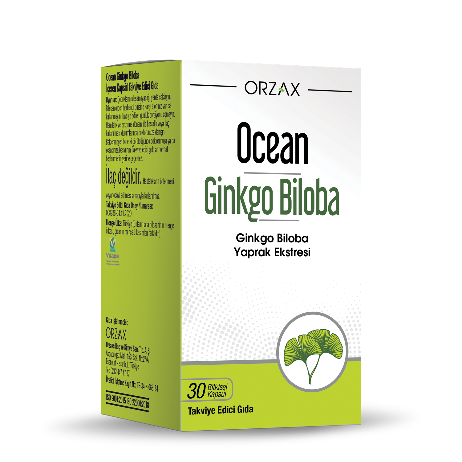 Ocean Ginkgo Biloba her kapsülünde 120 mg ginkgo yaprak ekstresi bulunan gıda takviyesidir. Ocean Ginkgo Biloba, Vcaps marka bitkisel selülozik kapsüllerle üretilmiştir.
