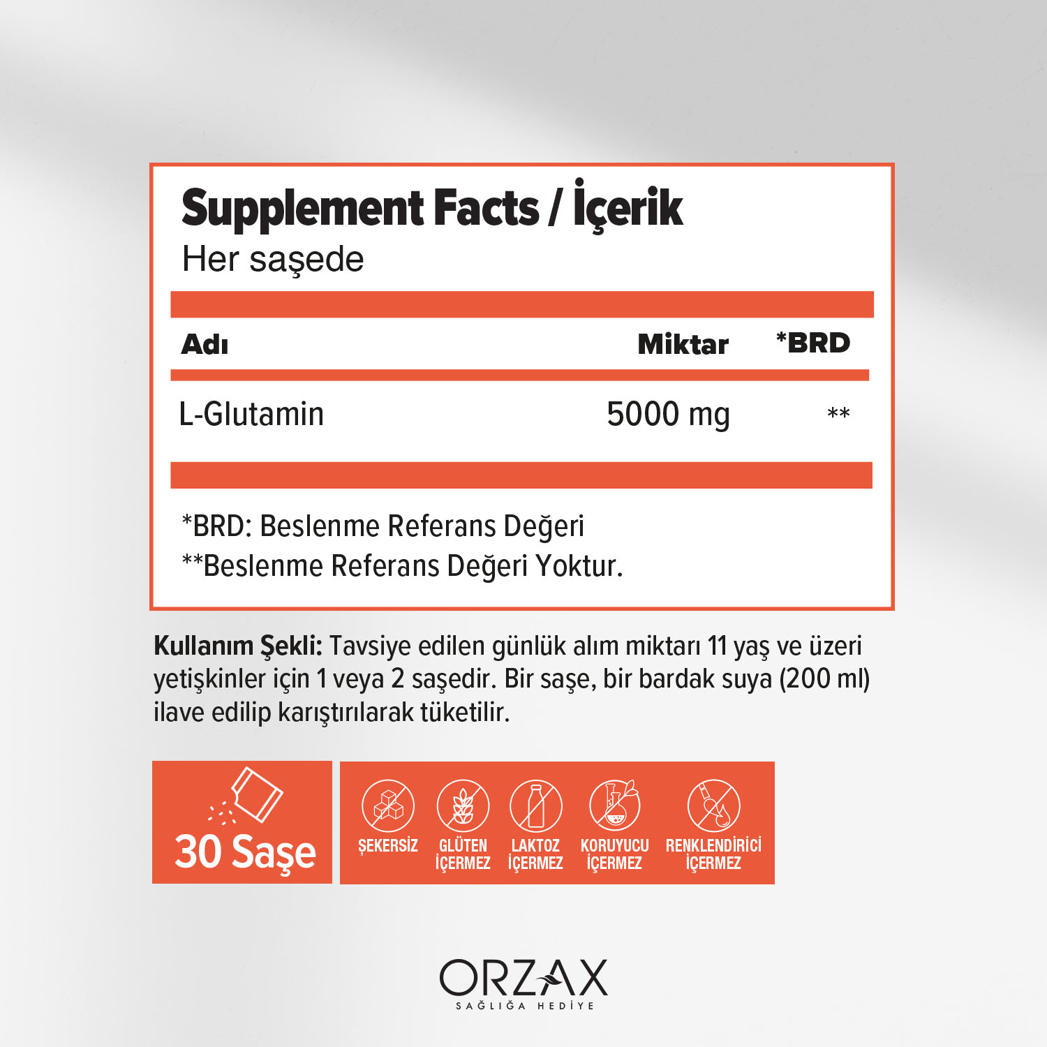 Ocean L-Glutamin, her saşesinde 5000 mg saf L-Glutamin içeren bir gıda takviyesidir. Tek bileşenli yapısı, sade ve yüksek saflıkta bir kullanım sunar. Glüten, şeker, laktoz, koruyucu ve renklendirici içermeyen temiz içeriğe sahiptir. Saşe formu sayesinde kullanım ve saklama kolaylığı sağlar.