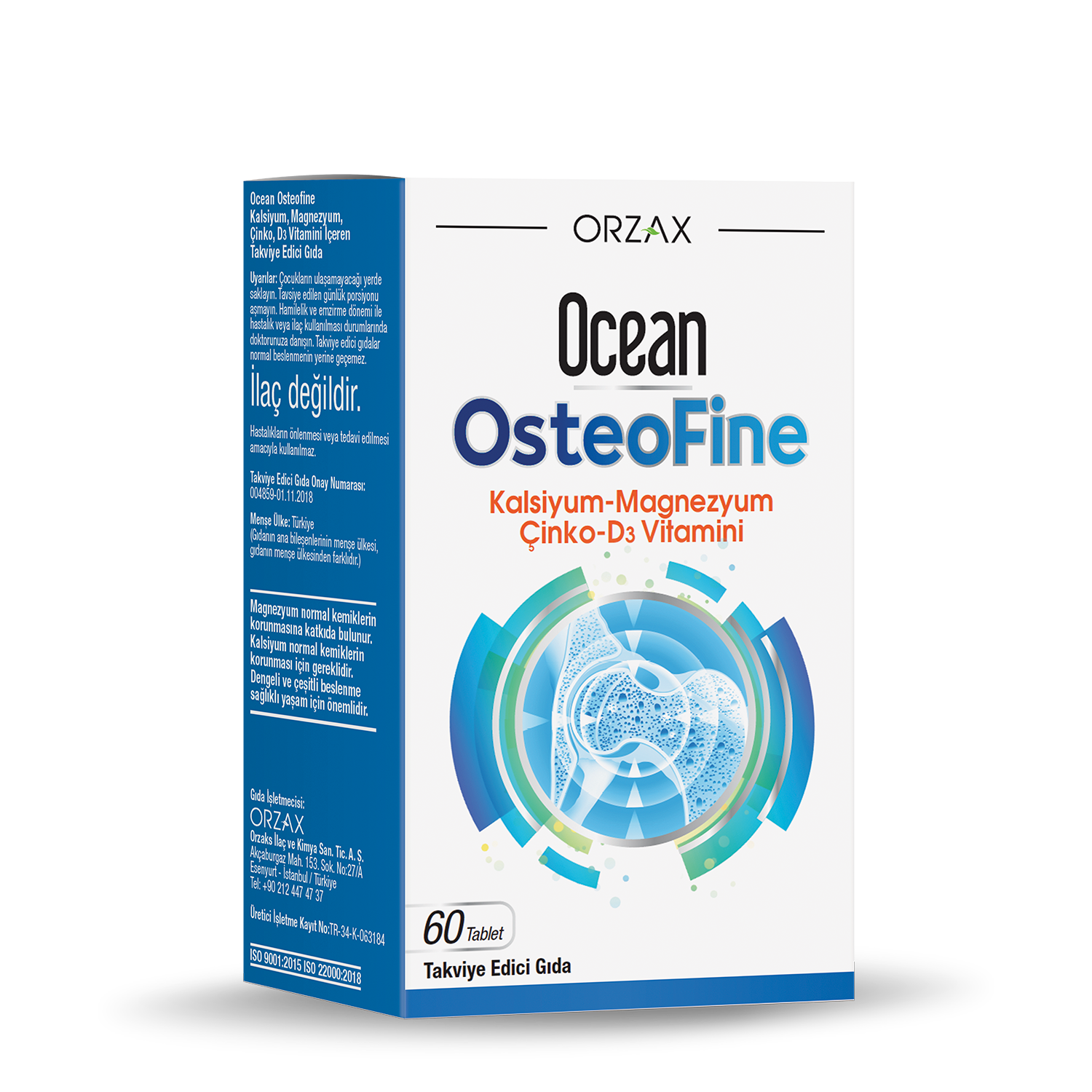 Ocean Osteofine, her tablette Kalsiyum, Magnezyum, mineral ve vitamin içeren takviye edici gıdadır. Ocean Osteofine içerisindeki kalsiyum ile normal kemiklerin korunması için gereklidir.