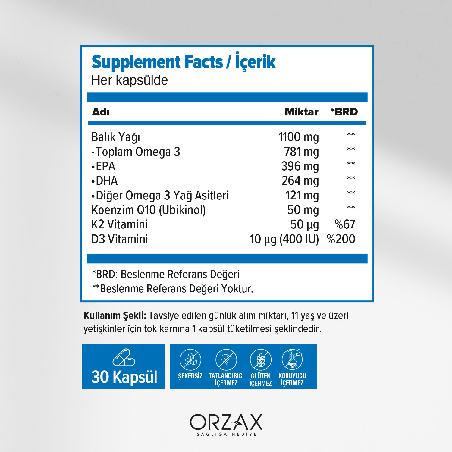 Faydalı etkinin sağlanabilmesi için günde 250 mg EPA ve DHA alınmalıdır. *