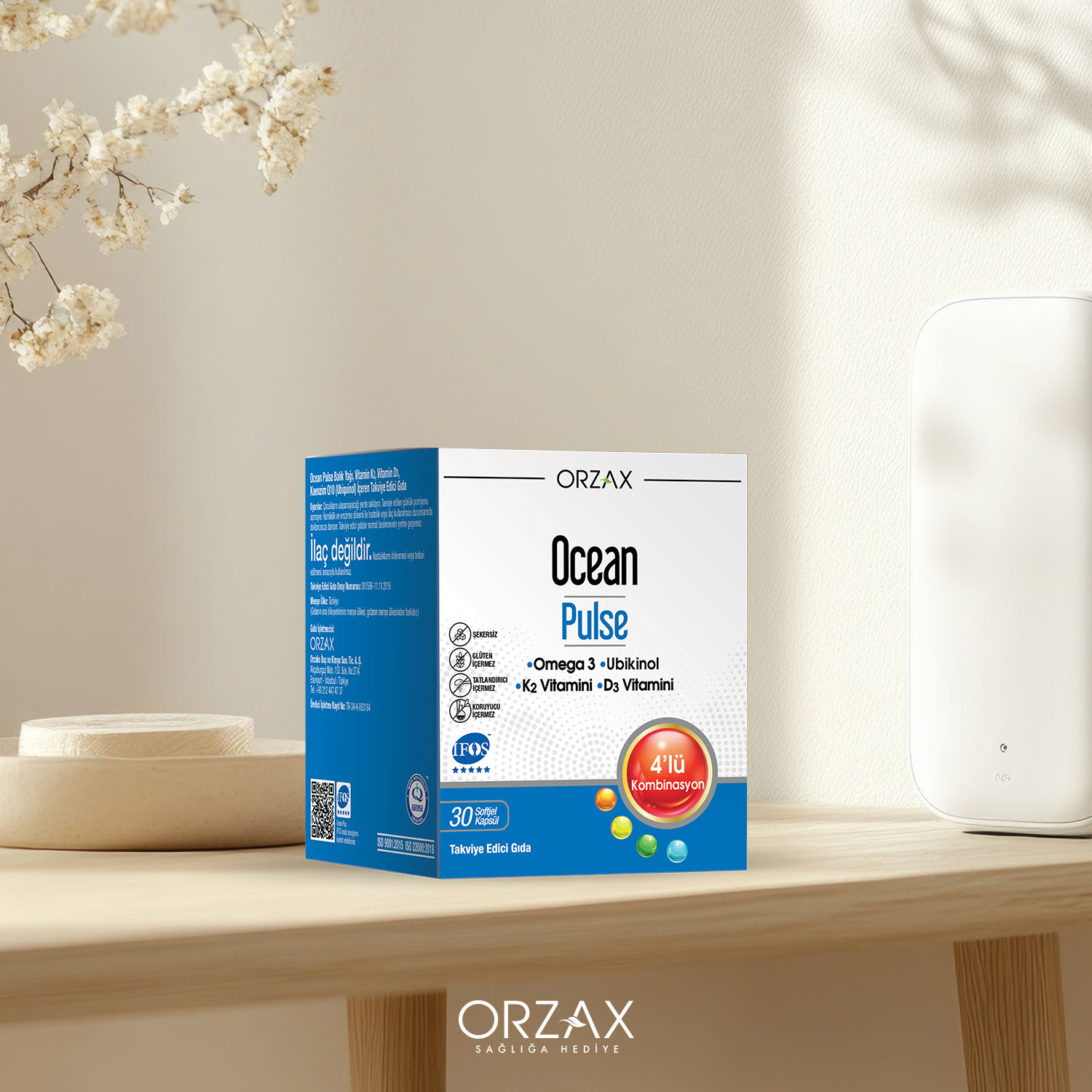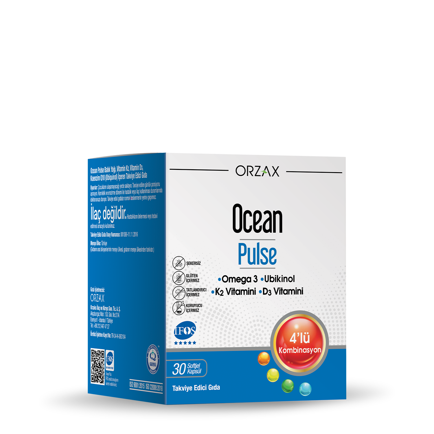 Ocean Pulse her kapsülünde yüksek omega 3’e ek olarak aktif formda koenzim Q10 (ubikinol), D3 vitamini ve K2 vitaminini bir arada içeren bir gıda takviyesidir. Ocean Pulse bileşiminde; ağır metallerden uzak, temiz ve soğuk sularda yaşayan, küçük cins balıkların gövde yağları kullanılmaktadır. Üretim esnasında kimyasal çözücüler kullanılmaz, sadece mekanik yöntemler tercih edilir. Her üretim serisinde; saflık, tazelik, içerik malzemesi ve kalitesiyle IFOS 5 yıldız kalite onayına sahiptir.