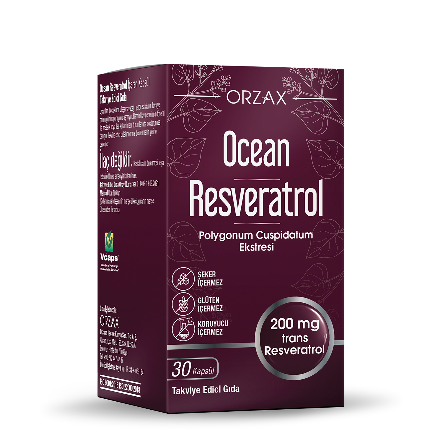 Ocean Resveratrol, 1 kapsülünde 205 mg Japon Poligonumu ekstresinden gelen 200 mg Trans Resveratrol içeren bir gıda takviyesidir. Vegan ve vejeteryan kullanımına uygun VCaps kapsüller kullanılarak üretilmiştir. Şeker, koruyucu ve glüten içermez.