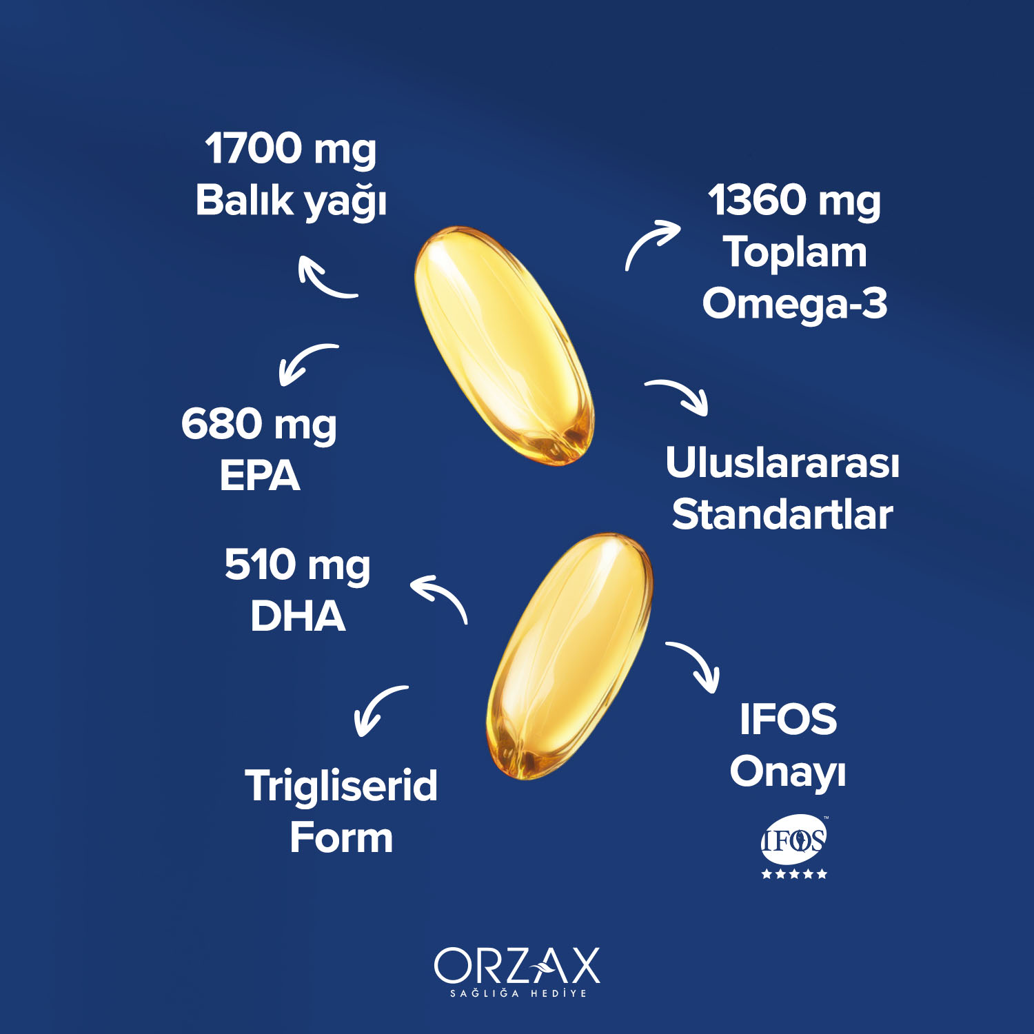 Ocean Ultimate her bir kapsülünde 1700 mg balık yağı içeren gıda takviyesidir. Her üretim serisinde saflık, tazelik, içerik doğruluğu ve kalitesiyle IFOS’tan 5 yıldız kalite onayına sahiptir.